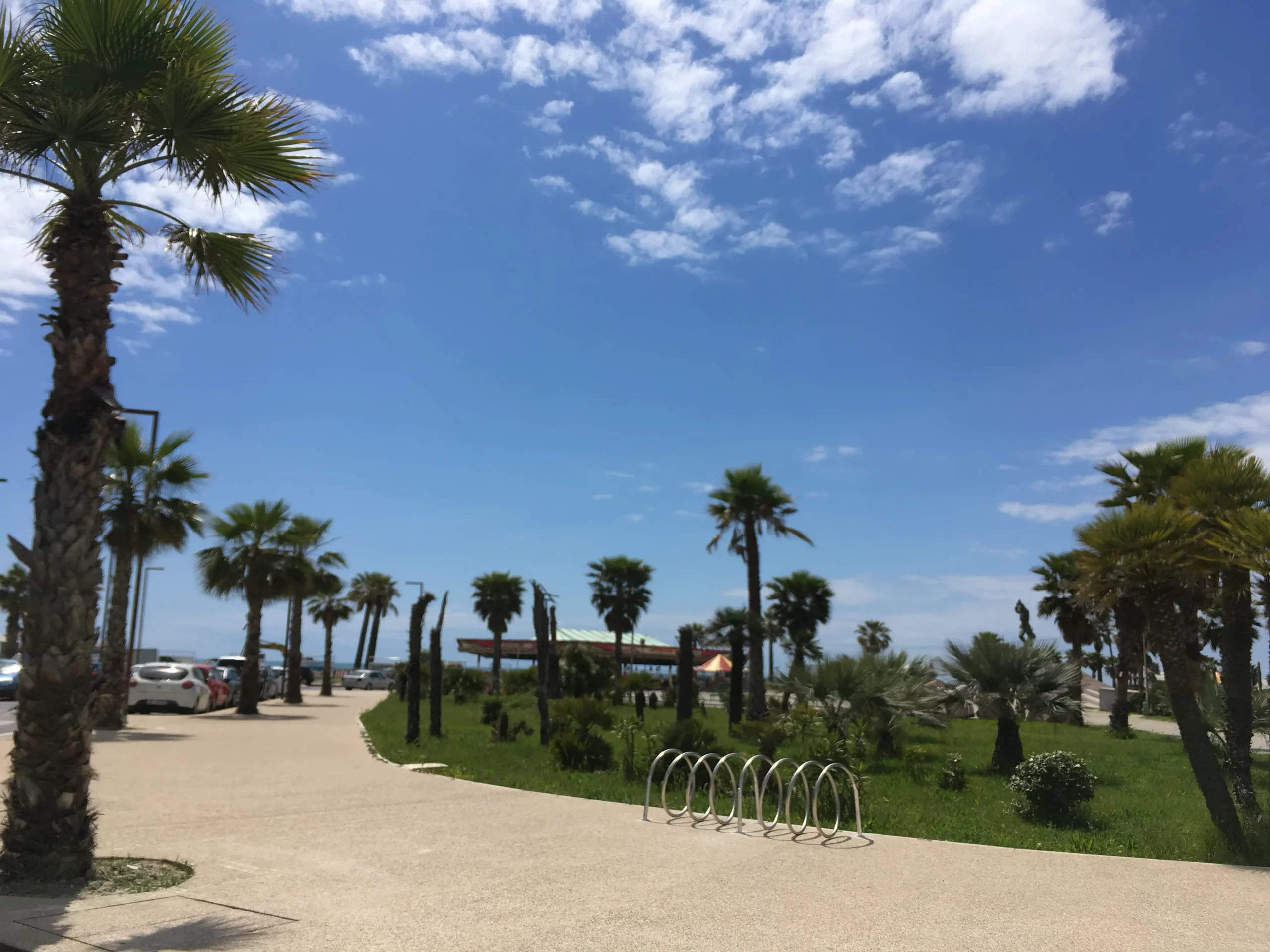 Er zeigte uns die Stadt und empfahl ein Restaurant. Laut Aussage von Mr. Frok Jr. sei dies das beste Lokal. Auf dem Weg konnten wir uns ein näheres Bild vom Örtchen machen: Es bestand – wie schon aus der Ferne erkennbar – größtenteils aus maroden (Platten-)Bauten in strukturloser Anordnung. Kreuz und quer verliefen Stromkabel von Haus zu Haus. Streunende Hunde und Katzen tapsten durch die Gassen. Ein plötzlich auftretender Platzregen unterstrich die traurige Szenerie. Im Sommer soll dies ein beliebtes Urlaubsziel für osteuropäische Touristen sein. Bei schönem Wetter sieht die Gegend gewiss auch freundlicher aus – die „Promenade“ machte selbst bei schlechtem Wetter einen recht einladenden Eindruck.