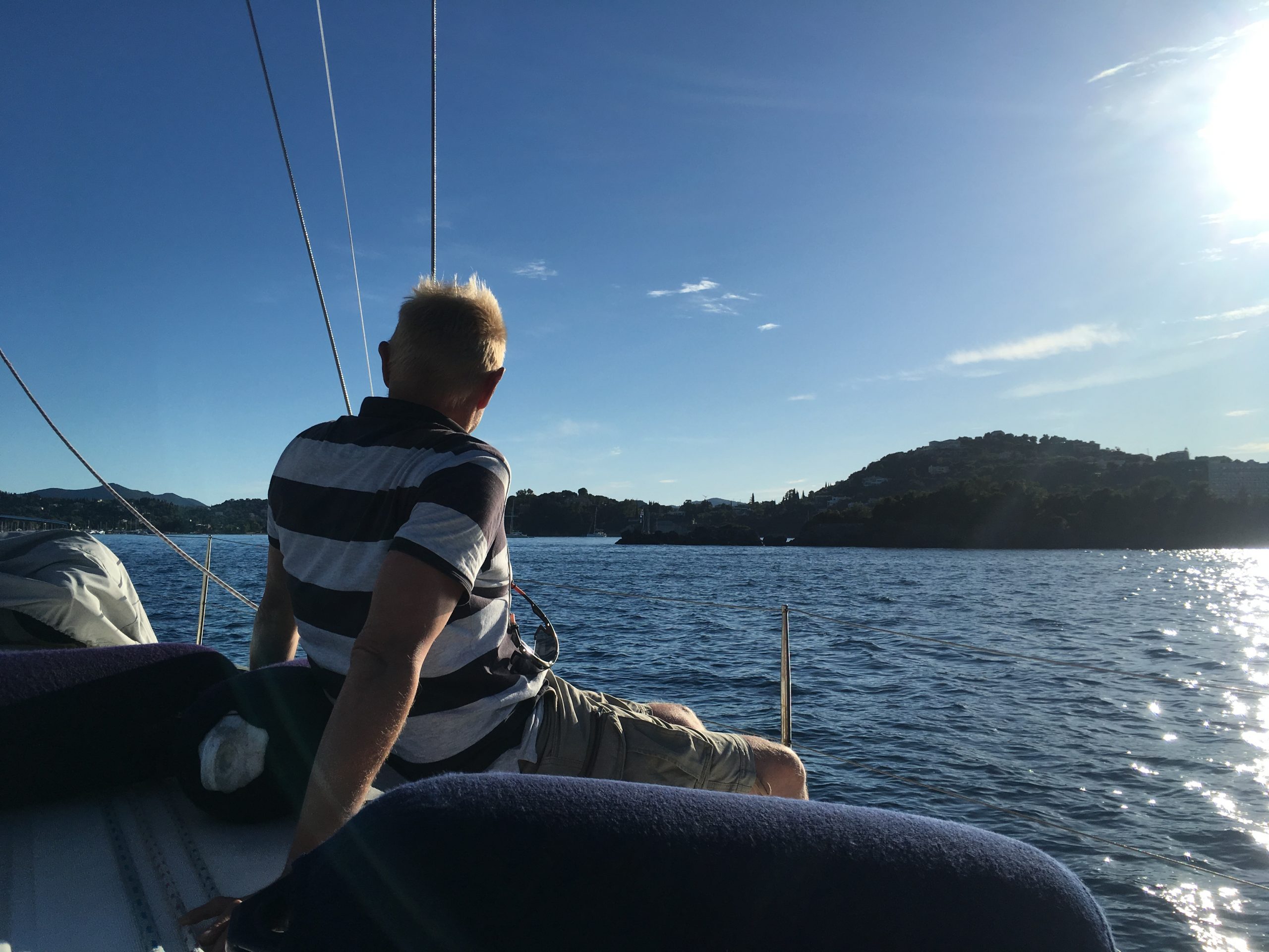 Lars Walkenhorst auf Polaris mit Blick auf Korfu